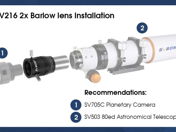 La lente Barlow SV216 adopta un diseño telecéntrico de 4 piezas, que prolonga de manera efectiva la longitud focal del espejo primario sin introducir aberraciones cromáticas ni problemas de viñeteado que molesten a los usuarios. Ofrece un excelente control de la aberración esférica, lo que da como resultado un campo de visión más plano que la lente Barlow estándar;