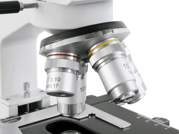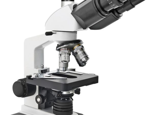 Bresser Bioscience 40-1000x Trino Microscope: The BioScience is an optimal instrument for study and science. Characteristics: Köhler Iluminator, separate AC-adapter for high end safety, coaxial mechanical desk with nonius scale, coarse and precise focusing. Technical Specifications and Features: Type: Transmission microscope, Head: Trinocular, Standard Eyepiece: WF 10x (23 mm diameter), Standard Objectives: DIN 4x / 10x / 40x / 100x oil retractable, Magnifaction: 40x – 1000x, Type of objective: Achromatic, Illumination: 12V / 30W halogen, with dimmer, Standard Condenser: Abbe N.A. 1.25, Power Supply: 110V-230V AC power. Net weight total (incl. accessories) = 17.4 lbs.