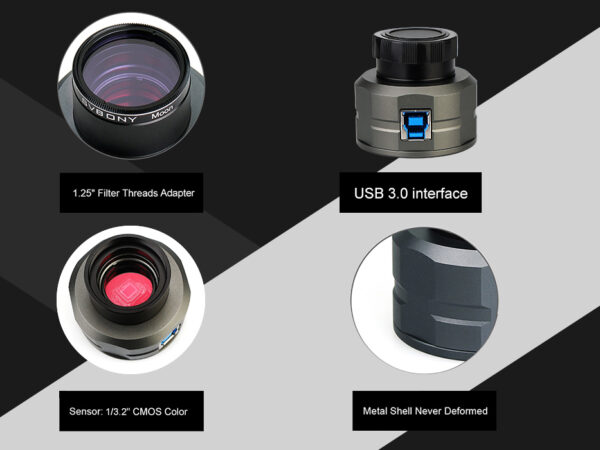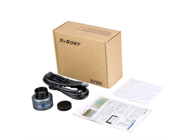 La cámara SV205 utiliza un sensor de imagen Sony IMX179 de 8M Pixel con un tamaño de píxel de 1.4µmx1.4µm, este tipo de sensor de cámara es ideal para capturar imágenes de planetas como Saturno, Júpiter y Marte, etc. Focales cortas, Refractores y Newtonianos F/5 de 130 y 150mm, Schmidt Cassegrains F/10 de 6″ y8″, y muchos tamaños de telescopios más son ideales para aprovechar estos pixel de 1,4 micrones que aseguran máxima resolusión en detalles planetarios. Su sensor SONY IMX 179 te permite obtener alta velocidad de frames, hasta 30 fps en full HD. Apta para utilizar con gran variedad de sistemas operativos, para asegurarte su compatibilidad por mucho tiempo. Cuenta con un excelente «housing» de aleación de aluminio, su cable USB 2.0 viene provisto de 1,80mts, brindandote suficiente comodidad para conectar tu equipo.