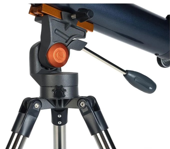 Control de altitud-azimut con palanca panorámica y embrague para un apuntado suave y preciso.