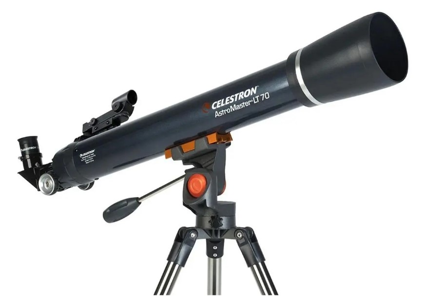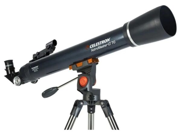 Telescopio refractor de 70 mm con óptica de vidrio totalmente revestida y estructura ligera.