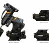 Posición ajustable de la cabeza del ecualizador para optimizar el centro de gravedad sobre el trípode y aprovechar al máximo el rango de latitud de 3º a 65º