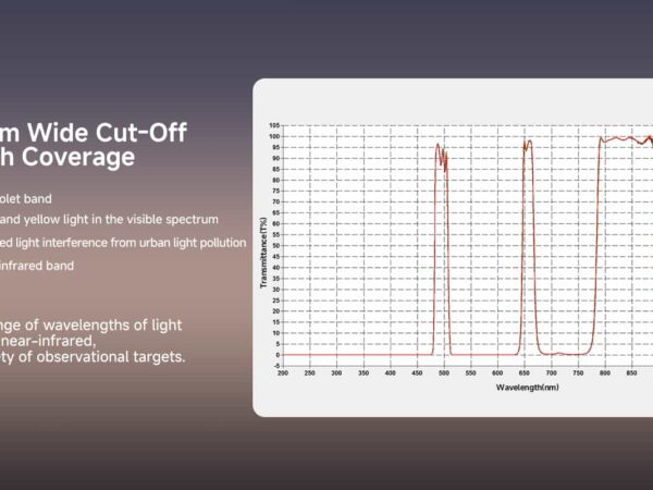 El filtro Multi-Banda Estrecha está diseñado para astrofotografía y permite capturar la mayoría de los objetos del cielo profundo, incluyendo galaxias, nebulosas de reflexión, nebulosas de emisión y cúmulos estelares, en diversas condiciones Bortle (de Bortle 1 a Bortle 8). Es especialmente eficaz en entornos con contaminación lumínica, lo que permite obtener imágenes con luz artificial brillante y bajo la luz de la luna. Ideal para cámaras One-Shot Color, este filtro permite capturar imágenes en color sin necesidad de múltiples combinaciones de filtros. Ofrece una alta transmitancia de las líneas de emisión clave (Ha/OIII/H-Beta) en el espectro visible, lo que mejora la relación señal-ruido (SNR) y el contraste. Además, deja pasar la luz infrarroja cercana, lo que permite obtener imágenes de objetos del cielo profundo que otros filtros no podrían capturar.