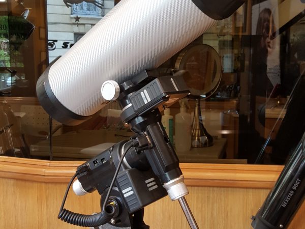 Otra ventaja radica en que es compatible con trípodes de mayor tamaño, también te permite adosar una base de control micrometrico del azimut del eje polar, más varios accoesorios disponibles. Su sistema de correa dentada te evita el molesto juego y trabaja muy bien exigiéndola, es una montura de múltiples usos que te va a acompañar durante todas tus salidas astronomicas. Poder adaptarla a trípodes de mayor tamaño le suma mas de un 30% en su capacidad de carga, por ejemplo un tubo Schmidt Cassegrain de 8″ o un RC de 6″ en modo visual o fotografico (si usamos guiadoras livianas y exposiciones de 15″, aunque hemos obtenidos tiempos con excelentes guiados de mas de 3 minutos aun sobrecargada).