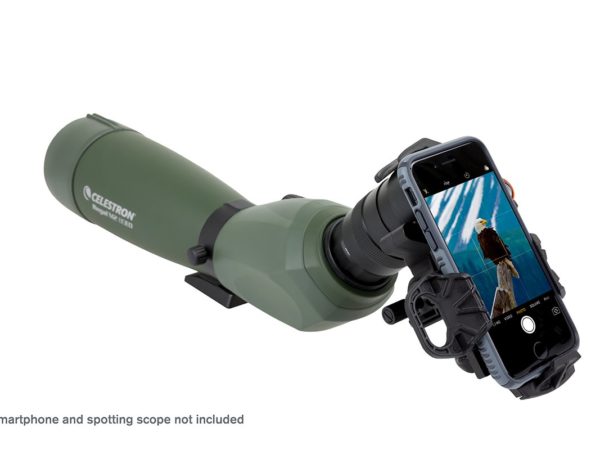 “Ajustar el teléfono al adaptador es simple y rápido, y el teléfono se mantiene en su lugar de forma segura, no hay que preocuparse de que se caiga mientras se mueve. Luego ajusta la posición del teléfono con las perillas de los ejes X e Y; esto también es fácil y relativamente rápido. Finalmente, la perilla del eje Z le permite bajar o subir el teléfono para eliminar las viñetas «. – Matt Merritt, «Desbloquee el potencial de su teléfono», Gear Reviews, revista «Birdwatching», agosto de 2018
