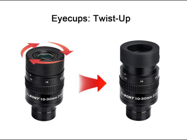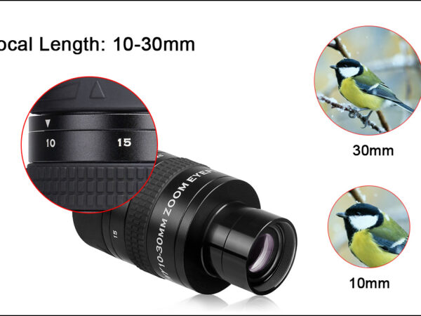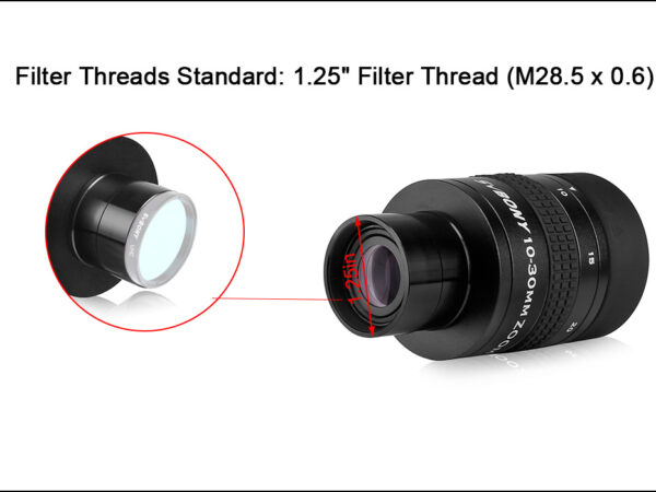 Una Opción más económica sin perder calidad es este ocular zoom de 10 a 30mm de focal. Como siempre decimos, si bien los oculares zoom no pueden tener tanto campo o luminosidad como los oculares equivalentes de focales fijas, la ventaja de los oculares con ZOOM reside en poder variar la luminosidad y el contraste para una nebulosa, planeta, cúmulo o galaxia hasta encontrar su punto más cómodo en la observación. No nos va a importar tanto los aumentos como el campo y la luminosidad que se traduce en comodidad, de acuerdo a nuestra dilatación de pupila, si usamos o no dioptrías en nuestro anteojos o lentes de contacto, etc.