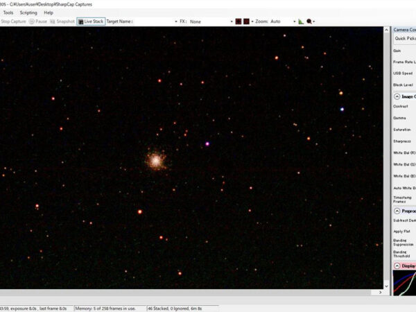Sistema Windows con software Sharpcap, versión 3.2.6433 y