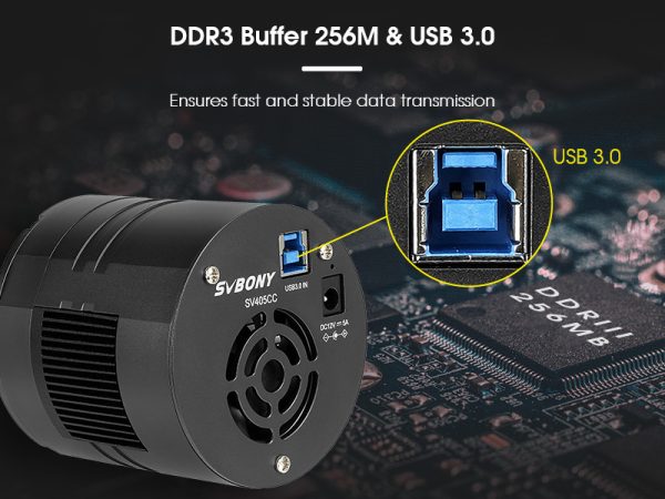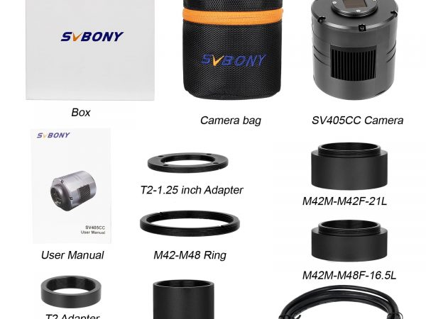 En stock para entrega inmediata! La sv405cc es la primera cámara de cielo profundo de SVBONY, equipada con el excelente sensor SONY IMX294 de 4/3», con capacidad de captura de luz muy sensible y el sistema de enfriamiento TEC (asistido por ventilador), que realmente ayuda en la fotografía de larga exposición. Un sensor de 19,2mm x 13mm es excelente para imagenes de buen campo y su tamaño de pixel de 4,63mm lo hace ideal aún para focales largas sin hacer binning, para lo que esta igualmente preparada hasta 4×4. Su bajo ruido frente a la alta sensibilidad más un efectivo sistema de enfriado de sensor la hace excelente para imagenes de Galaxias y Nebulosas y de sorprendente rango dinamico tanto en planetaria cómo en Cielo escuro.